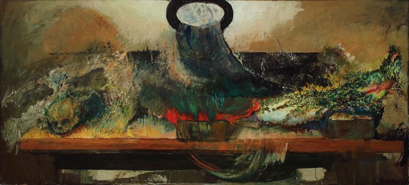 Bloom’s oeuvre is captivating for his incandescent, jewel-toned treatment of mystical and corporeal matters that range in style from painterly realism to semi-abstract expressionism. His work draws upon his immigrant heritage, interest in Eastern religions, and themes of death and human mortality. In his paintings of human corpses, skeletal fish and trees, archeological excavations, synagogues, Christmas trees, jewels and stones, Bloom explores underlying form and contemplates concepts of beauty and spirituality, of life and death.
