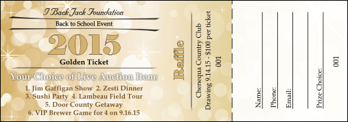 The golden ticket is a great way to be part of the live auction excitement without having to be at the event or make a bid! Once again this year, we are selling 100 golden tickets priced at $100/each. The winning ticket will have the opportunity to pick the live auction item of choice before the bidding even begins. When you purchase your golden ticket, you simply indicate your choice of live auction item!
