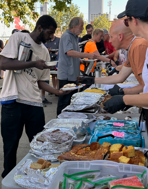 In the weeks leading up to the event, our neighbors experiencing homelessness, whose ideas and voices are too often overlooked, played a central role in planning every detail. Their ideas shaped the menu, music, and setup – ensuring this gathering truly reflected their voices and preferences. Their one heartfelt request? That every entrée, side, and dessert be homemade. The result was a lovingly-prepared feast of brisket, pulled pork, chicken, creamy macaroni and cheese, fresh salads, and a delicious assortment of desserts.