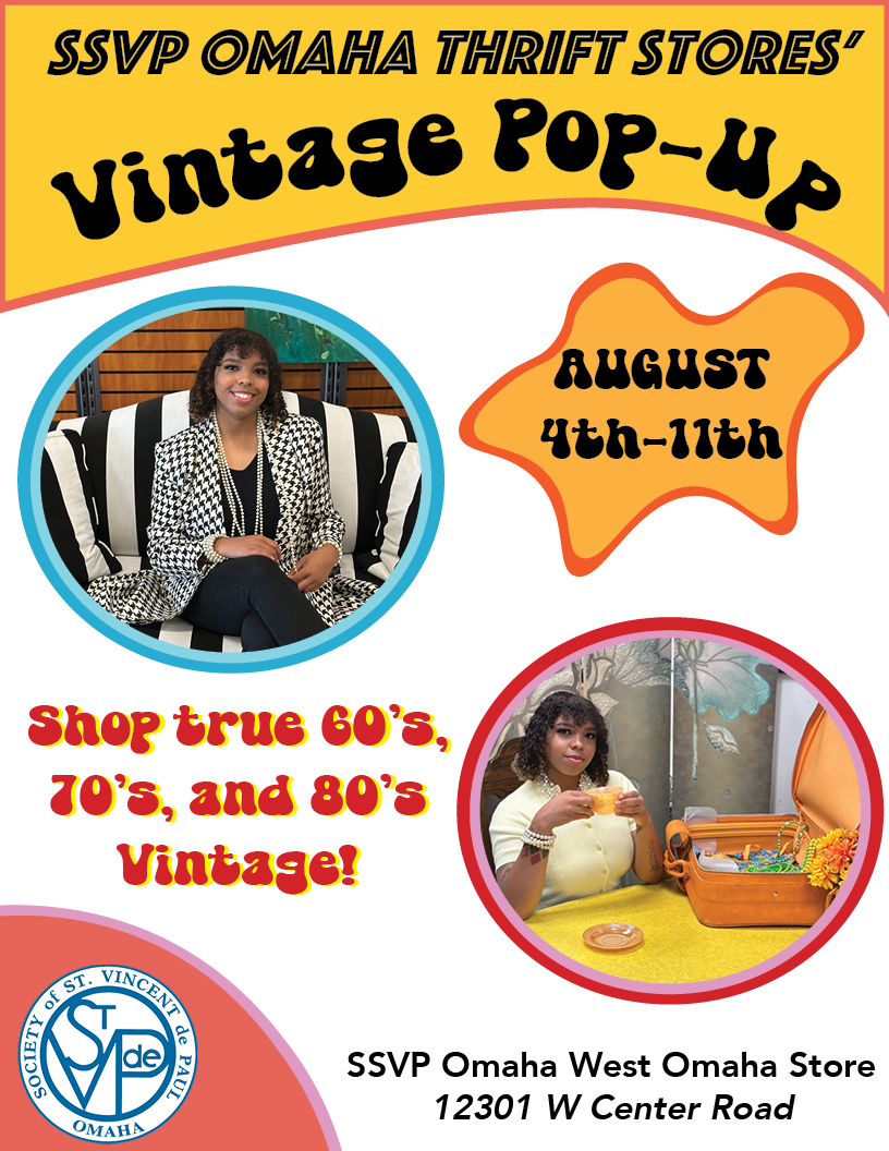 Our SSVP Omaha thrift stores are beyond excited to announce our one-week-only "Vintage Pop-Up" at our SSVP Omaha West Center Store!