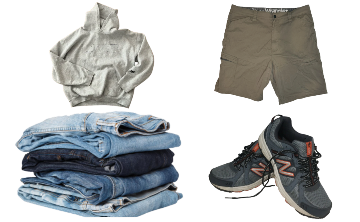 - Men’s Jeans (waist sizes 30, 32, and 34)