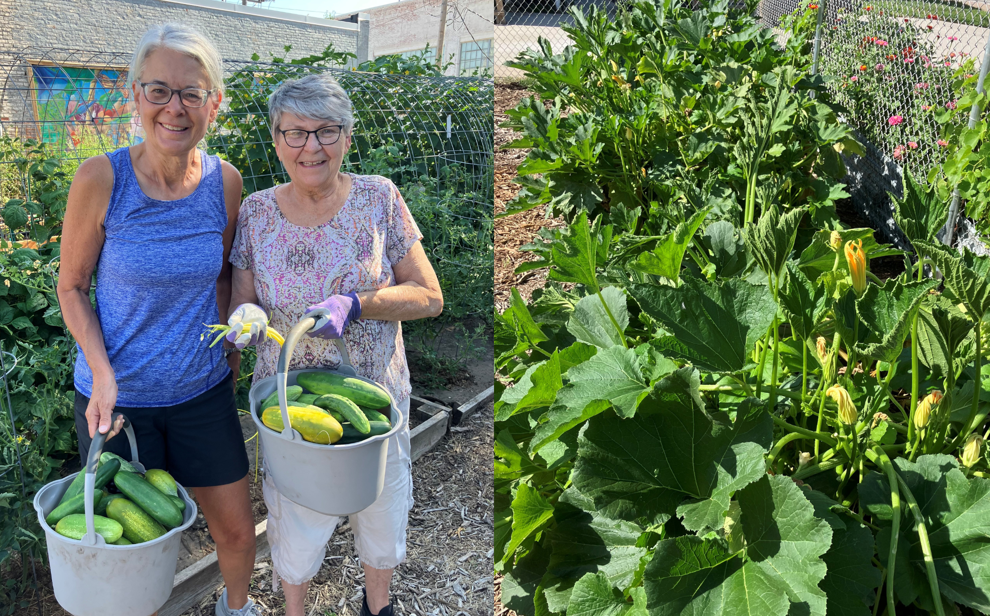 Pantry Garden co-coordinator, Pat Slaven, has been thrilled with the progress and production of the 2025 version of the Society’s Pantry Garden: “Things this summer are going as well as they ever have. This has been a terrific year,” shares Pat. Pantry Garden co-coordinator, Jolanta Stansbury, agrees, sharing, “We installed something new this year – a trellis! This helps climbing vine plants, like cucumbers and beans, to grow healthier. It also makes harvesting much easier. We are so pleased with the addition of the trellis … and really just with how well everything is growing!”