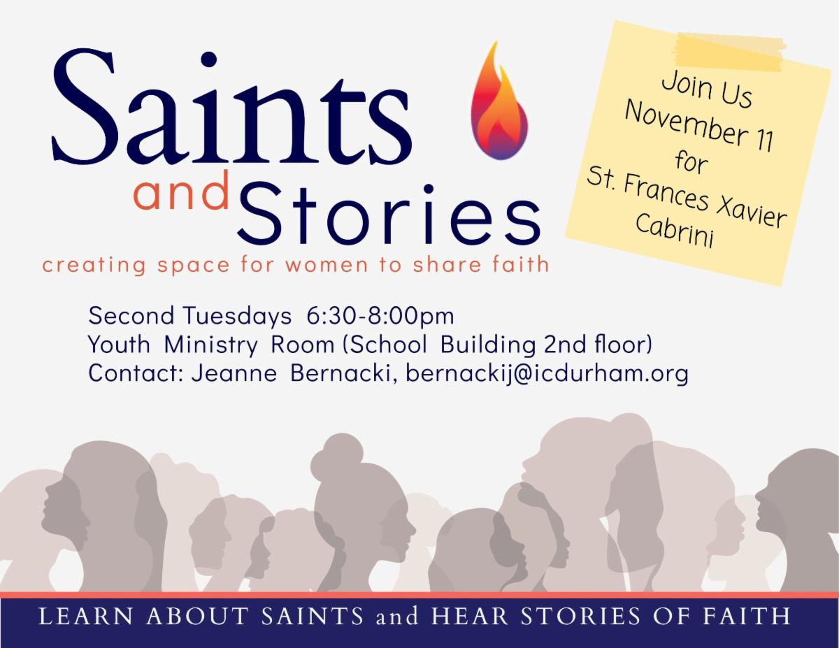 | | Join us on Tuesday, November 11, for Saints and Stories, a gathering to learn about the saints of our Church and hear stories of faith from local women. This month we will be learning about St. Frances Xavier Cabrini. We will meet from 6:30 to 8:00 p.m. in the youth ministry room in the school. All women in the parish are welcome to attend. Please contact Jeanne Bernacki, for more information. | | | Antorcha - November 14, 2025 - 5:30 pm | | |