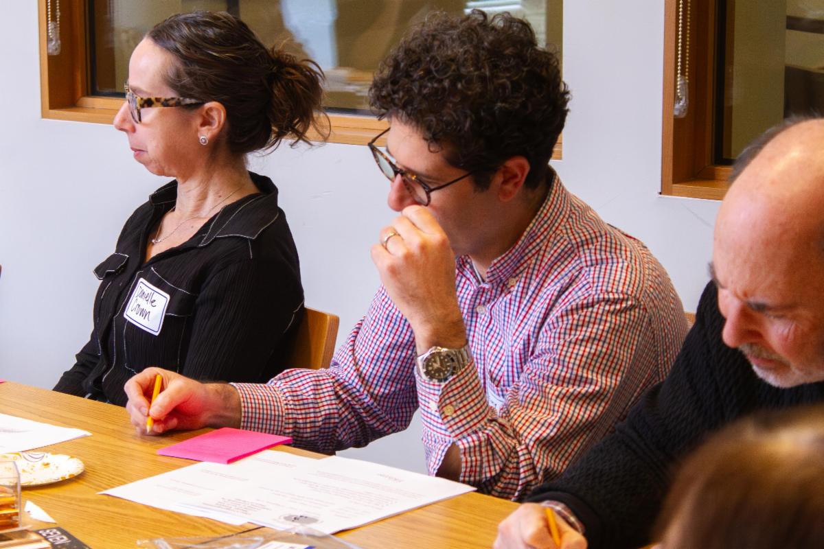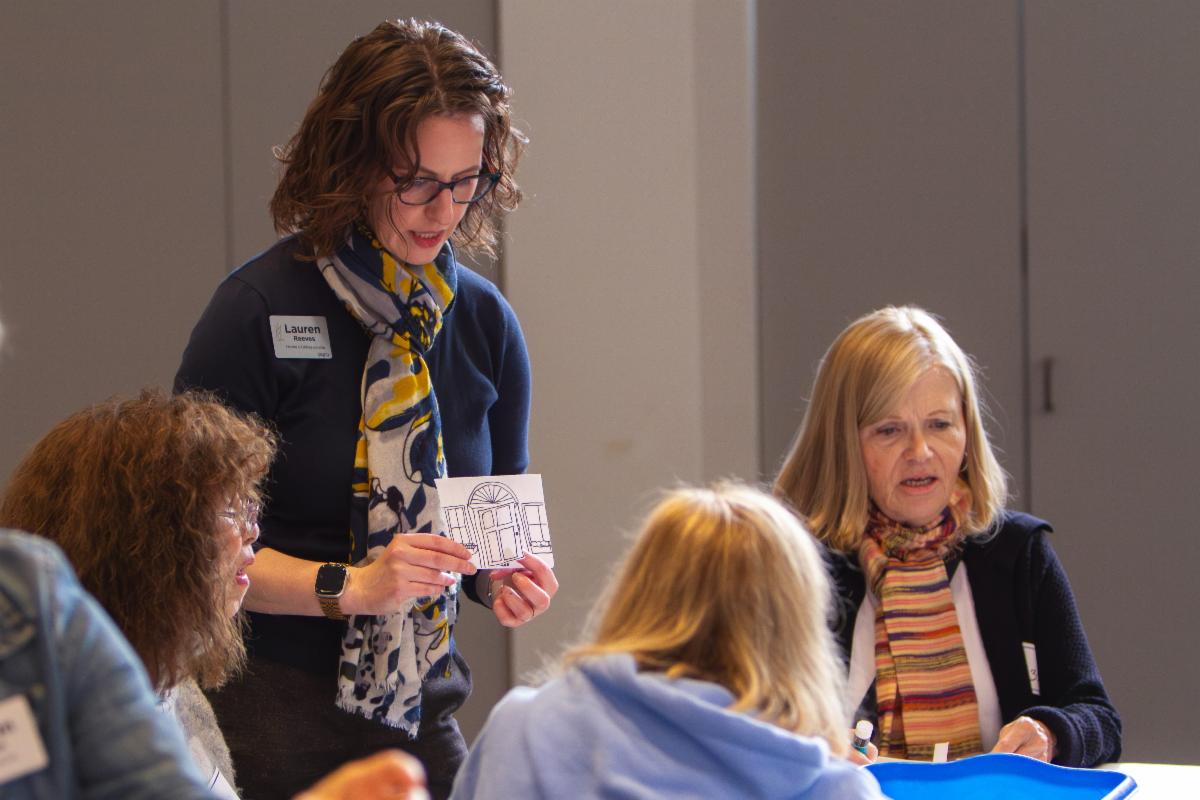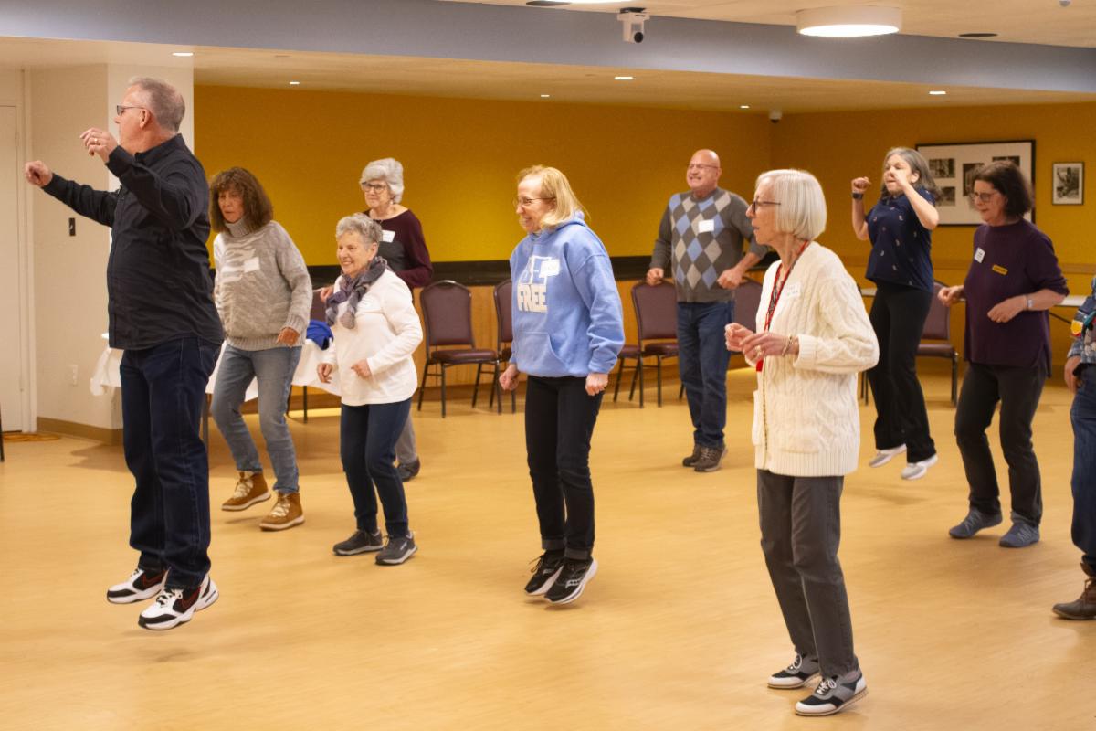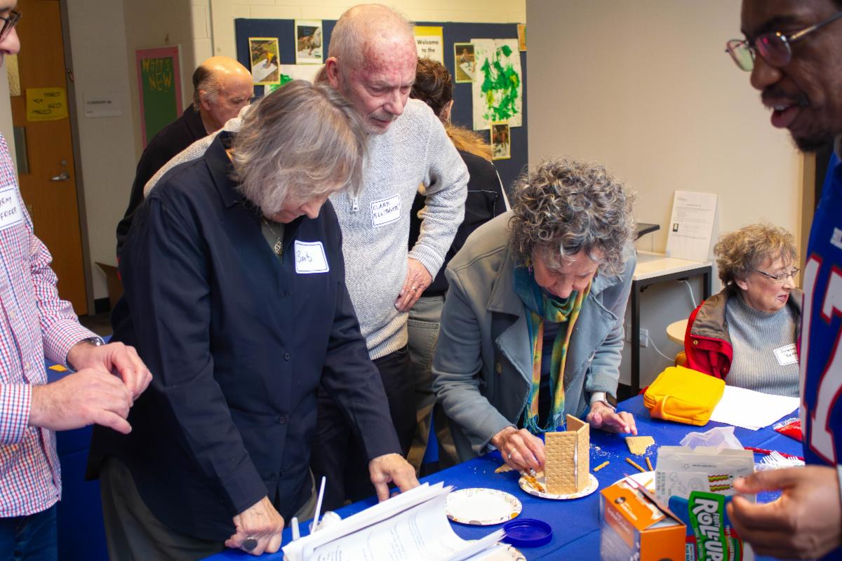 | | We started with lunch from Taboun Grill in the Crown Room. Doug Hoffman rang the cowbell to tell us it was time to go to the stations situated around the building, where some of the newest members of our Klei Kodesh led activities that allowed them to share their essence--and their favorite dessert. | | Executive Director Allan Bogan busted a dance move--and got us all levitating. For reals. | | Director of Community Engagement Debbie Siegel-Acevedo taught "6-Word Jewish Memories" with fellow writer/congregant Ellen Blum Barish. | | Director of Lifelong Learning Lauren Reeves led a Thresholds-themed art project. | | Director of Operations and Technology Pierce Boydbagby led an activity that helped us appreciate our building as holy ground. And Mark Antman helped us commemorate 75 years of being Beth Emet with the History Project. | | During the Grand Finale, Rabbi London shared a midrash on change, we reviewed the answers to the Beth Emet Scavenger Hunt, and we sang and danced some more! | | |