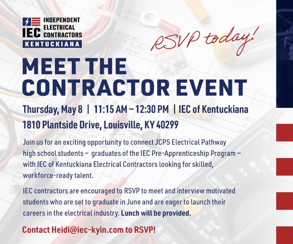 Come meet the first graduates of the IEC Pre-Apprenticeship Program! Over the past six weeks, JCPS Electrical Pathway students from six local high schools have received hands-on training from IEC instructors. These motivated students are now ready to take their next steps into the electrical industry.