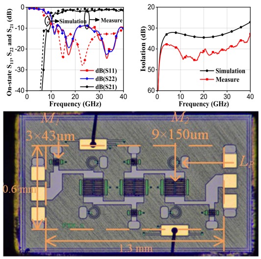| | Design of a Wideband and High Isolation Millimeter-Wave GaN Monolithic Integrated Switch Using Bandpass Matching Network | This work presents a novel bandpass matching network (BMN) based switch design methodology. Theoretical analysis shows that, compared to conventional low-pass matching network (LMN) based designs, the proposed approach enables the upward shift of the operating band while maintaining impedance matching and enhancing isolation. This makes the method particularly suitable for realizing wideband, high-frequency switches with high isolation in semiconductor technologies with limited transition frequency (fT). To validate the concept, a seventh-order single-pole single-throw (SPST) switch was designed and fabricated using a 0.15μm GaN-on-SiC process with a nominal fT of 35GHz. Measurement results show that the proposed switch achieves an insertion loss below 2dB and isolation greater than 33dB across the 15-40GHz band. Moreover, the design demonstrates excellent linearity, with a measured third-order input intercept power of 49-52dBm. | | | | MTT-S News and Announcements | | |