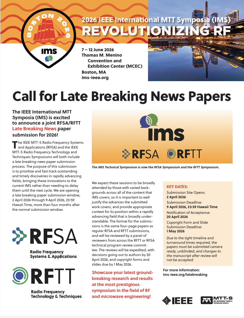 IMS2026 is excited to announce a joint RFSA/RFTT Late Breaking News paper submission for 2026!