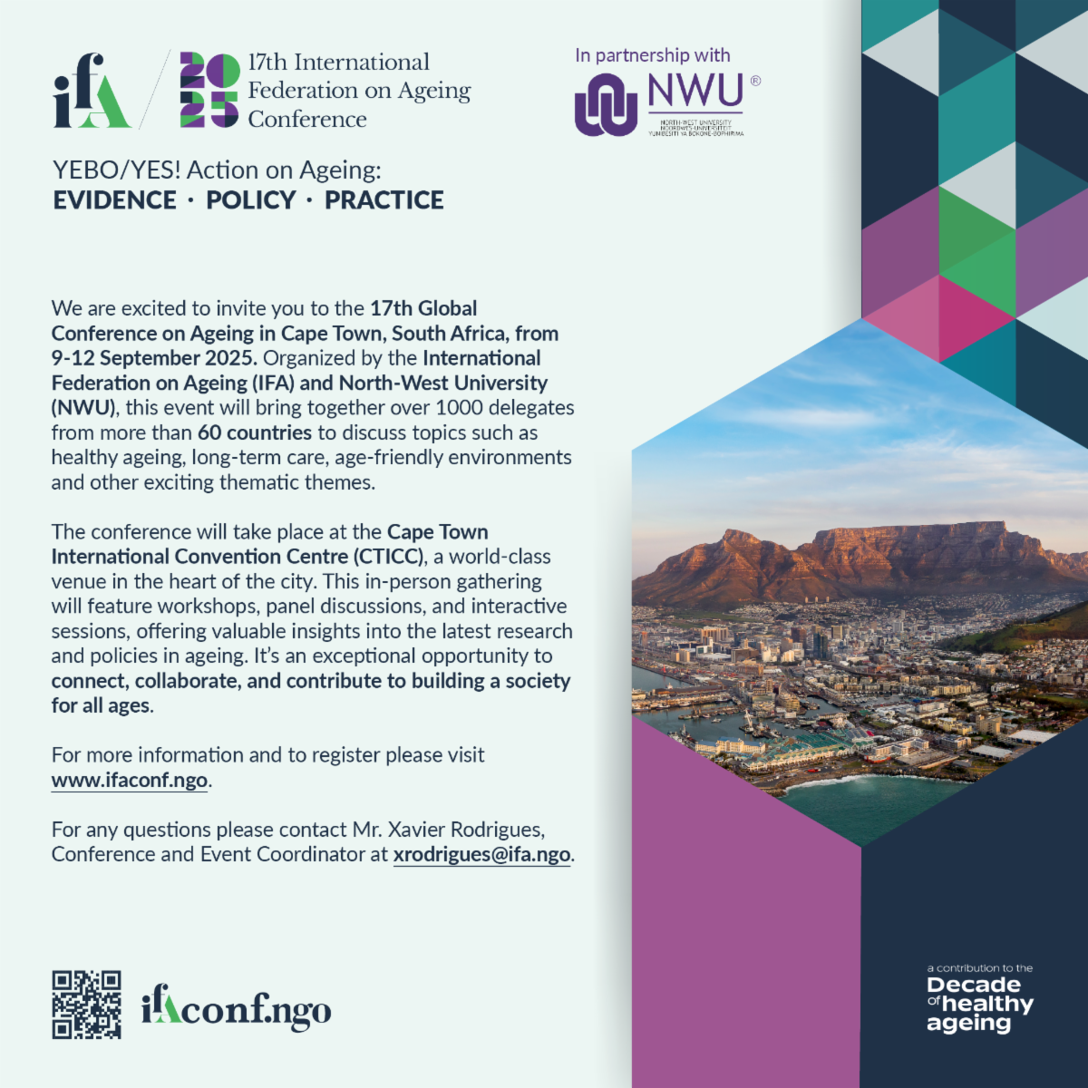 Join us in stunning Cape Town for the IFA 17th Global Conference on Ageing!