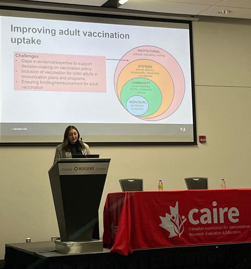 Ms. Katrina Bouzanis, Acting Director, Policy, Advocacy, and Innovation participated in an insightful session, "Is vaccine research, clinical practice, decision-making, and policy ageist?", with Dr. Melissa Andrews (Professor, Department of Medicine - Geriatrics, Dalhousie University) and Dr. Shelley Deeks (Deputy Chief Medical Officer of Health, Department of Health and Wellness, Dalhousie University) which brought important attention to the issue of ageism in vaccination policy and practice highlighting the need for continued advocacy to ensure access to vaccination for older adults in Canada. Additionally, IFA attended and presented at the Canadian Association for Immunization Research, Evaluation and Education (CAIRE) Research Sponsor Advisory Board Meeting on challenges and opportunities towards vaccination uptake in older adults in Canada. | | |