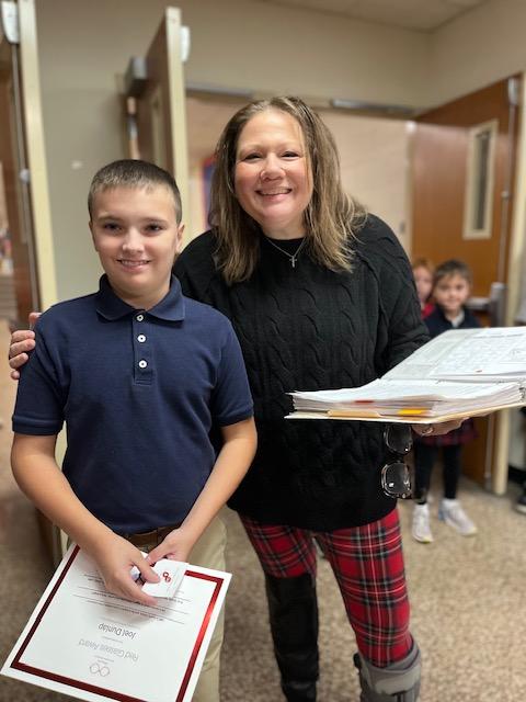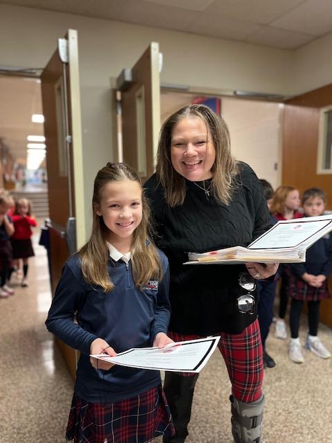 At the end of each quarter, one student in grades K-2, 3-5 and 6-8 are nominated by their teachers for the Red Glasses Award. This award is the product of the Red Glasses Movement which was started in honor of a very special 5-year old girl who passed away in 2018. She was defined by her red glasses, contagious smile, curious mind and giant, loving heart. This award is given to those students that exemplify Audrey's spirit to "Live Boldly. Love Big. Pass It On". Congratulations to Enola N., Etta C., and Joel D. We are so proud of you!