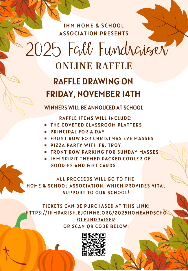 HSA online raffle tickets will go on sale next week, Tuesday, November 4th! Be on the lookout for the fun IHM spirit themed cooler packed with goodies and gift cards! The cooler raffle tickets are $5 each. Raffle tickets for the cooler can be purchased online and the students will get to add their name to the raffle box at the school entrance. An unlimited amount of $5 tickets can be purchased and entered into the cooler raffle drawing. Your kid could be the big winner of this incredible prize!