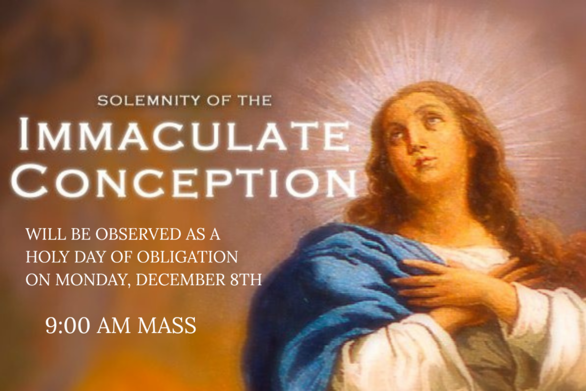 - 12/8 - Feast of the Immaculate Conception Mass - 9:00 am