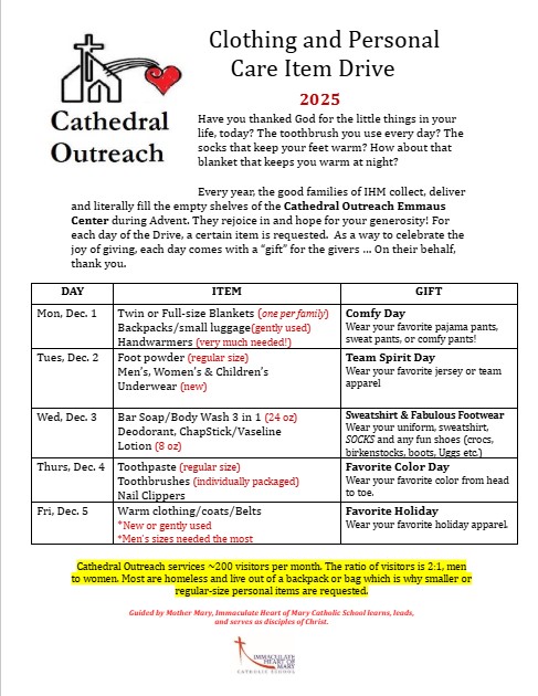 It’s all about participation! The top three entities with the most donors in 24 hours will be awarded a Catholic Foundation grant. 1st ($1,250), 2nd ($1,000), and 3rd ($750) place grants will be awarded. All donations must be made online through our unique IHM donation page to count for matching gifts competition. Set your alarms and save the link below to donate and help us reach our goal!