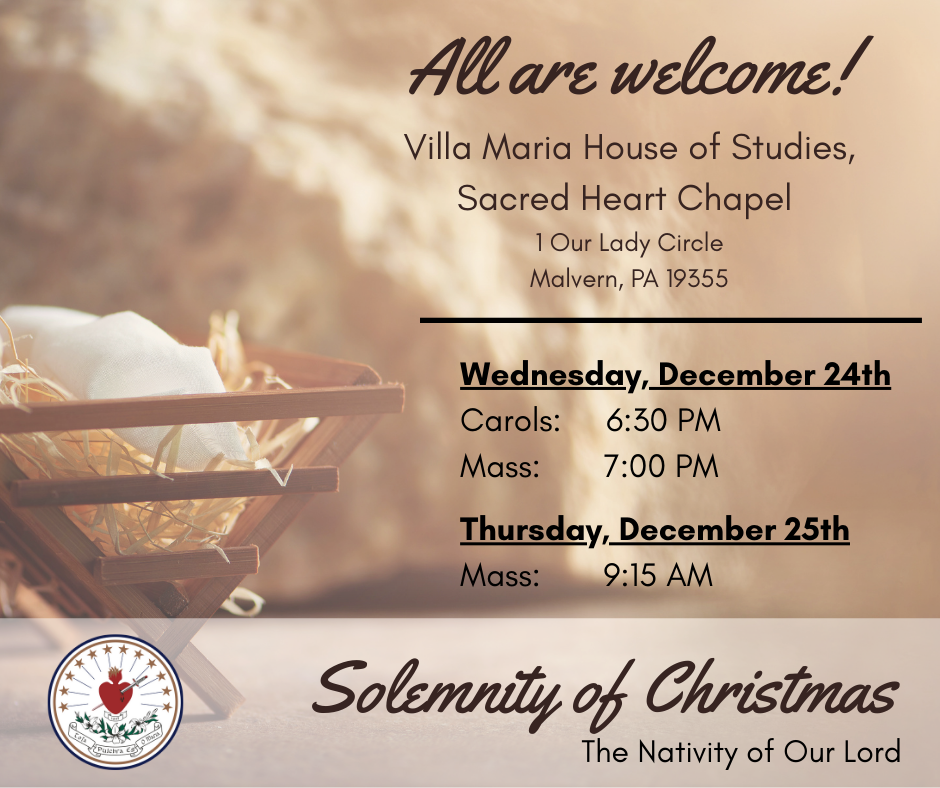 The Sisters, Servants of the Immaculate Heart of Mary are inviting our partners in ministry, colleagues, and friends to join us for our Christmas Mass. This two-day event will start on Wednesday, December 24th, with Christmas carols being performed at 6:30 p.m., followed by mass at 7:00 p.m. Then on Christmas Day, join us for our annual Solemnity of Christmas Mass at 9:15 a.m. This is a special time of blessed joys, and we would love to share it with you and your family!