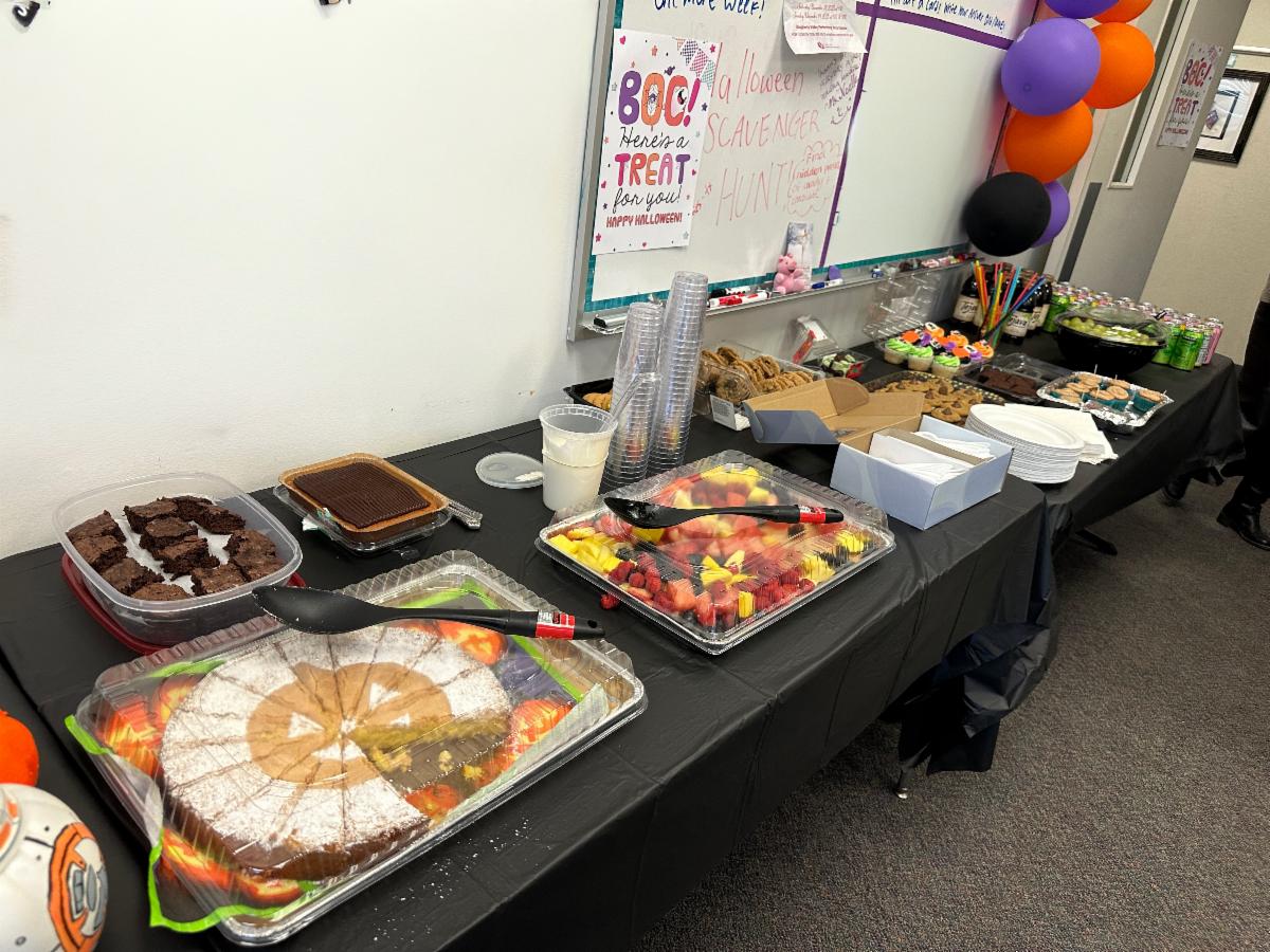 The tables were overflowing with devilishly delicious goodies, ghoulishly good snacks, and spook-tacular sweets for our amazing staff to enjoy.