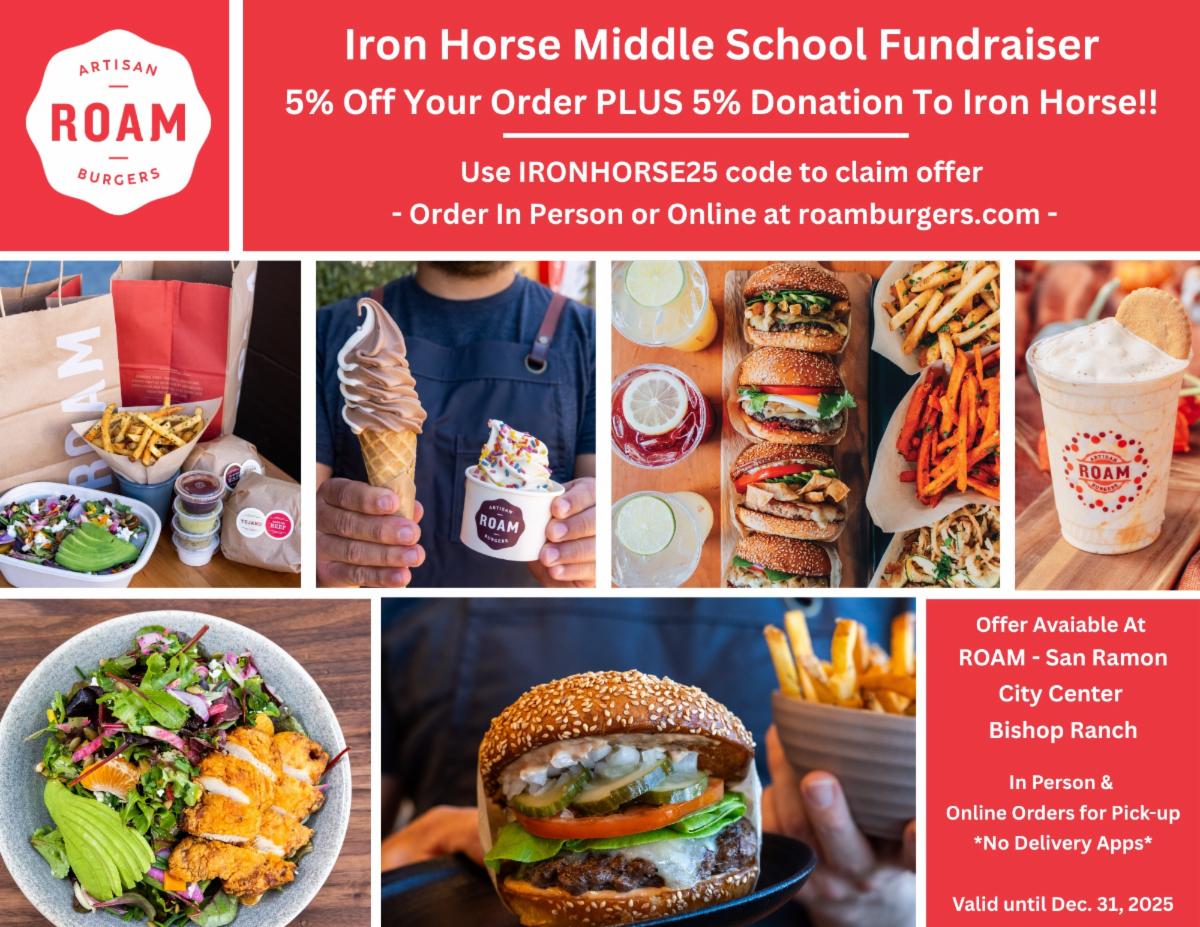 20% of all sales will be donated to support Iron Horse Middle School student activities.