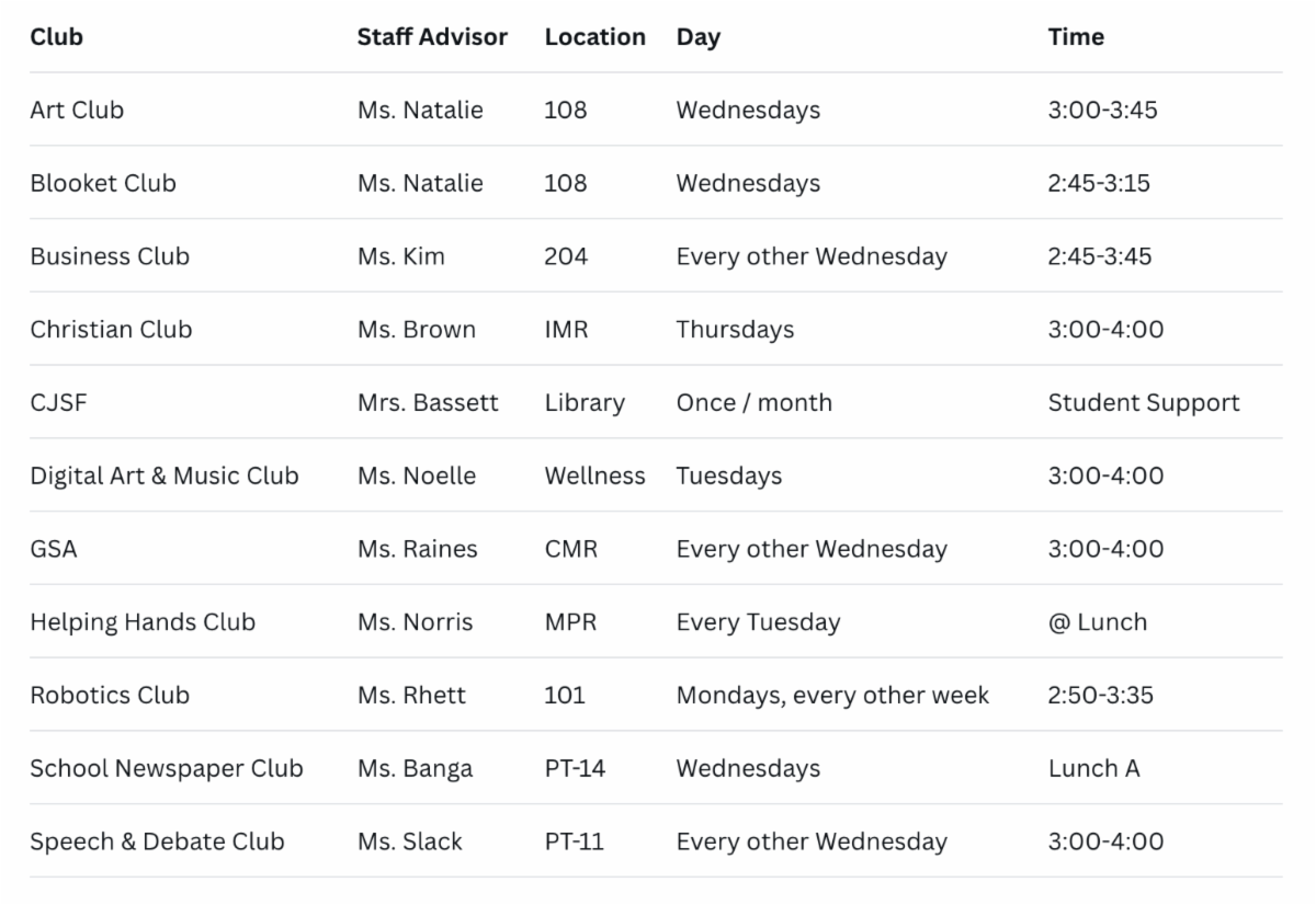 If your student would like a quiet place to get their homework done, they can come to Homework Club on Mondays and Thursdays from 3-3:45pm.