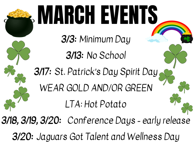 3/18, 3/19 & 3/20 - Conference Minimum Days, Dismissal 11:40am