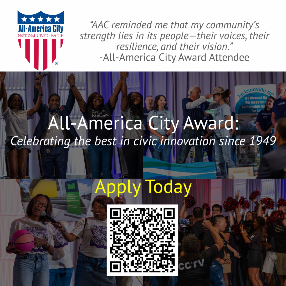 Is your community strengthening civic health and building trust? Apply to become a 2026 All-America City and showcase how your community comes together to make decisions and solve problems. This year’s award theme is “America at 250: Strengthening Civic Health and Building Trust,” and we will be spotlighting communities that are creatively engaging residents in collective efforts to create thriving and welcoming places where trust and belonging are abundant.