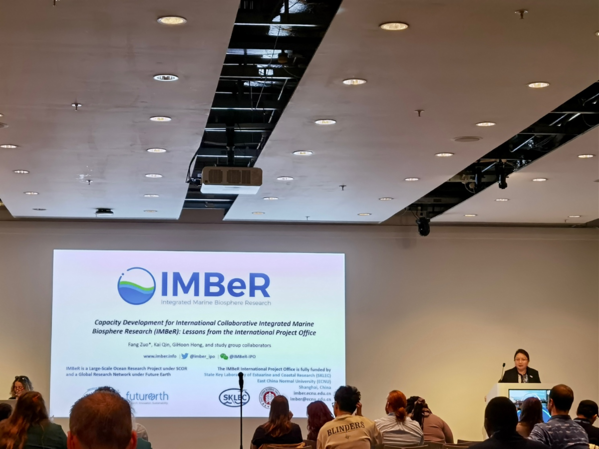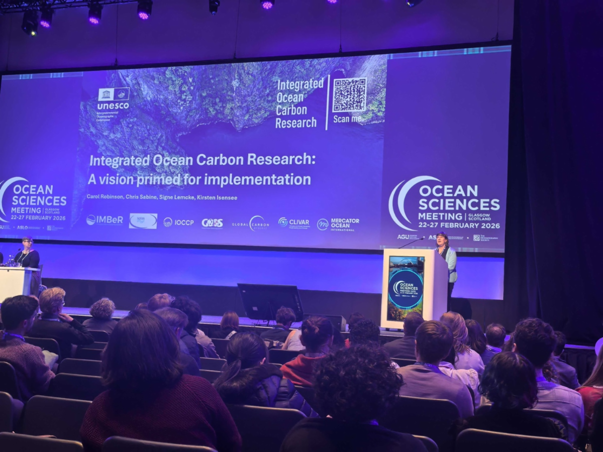 | | IMBeR members actively participated in the Ocean Sciences Meeting 2026 (22-27 February, Glasgow, Scotland), contributing to oral and poster sessions on marine biogeochemistry, ecosystem dynamics, and ocean-climate interactions. Key activities included discussions on IMBeR 3.0’s new decadal science plan and the co-launch of the Integrated Ocean Carbon Research (IOC-R) report. Science teams, such as ICED, the Action Plan for the Ocean, and the Submarine Groundwater Discharge Working Group (SGD-WG), shared insights and fostered collaboration. Early-career engagement was highlighted through a Town Hall event co-hosted with the IMECaN network. Here, we share some photos from the event with our readers, and a more comprehensive summary will be provided in an upcoming event report. | | At the SKLEC’s booth and the SCOR booth, Prof. Dongyan Liu, IMBeR Chair, along with the IMBeR IPO representatives, Fang Zuo and Kai Qin, conducted outreach on the IMBeR 3.0 project framework, objectives, and future research directions, while gathering input from international colleagues to inform scientific planning. | | During the ASLO cross-regional session, Fang further elaborated on the decadal plan for IMBeR 3.0 and shared strategies for establishing and sustaining international working groups with participants. | | Carol Robinson, IOC-R Co-Chair, introduced the Integrated Ocean Carbon Research (IOC-R) initiative and officially launched its new report. | | Co-sponsored by the Global Carbon Project, SOLAS, IMBeR, CLIVAR, IOCCP, and the Intergovernmental Oceanographic Commission of UNESCO, the IOC-R report, developed by 72 authors and 13 reviewers from 23 countries, provides a comprehensive and actionable foundation for addressing current and future challenges in ocean carbon research. | The IMBeR SGD-WG and its Climate Change Subgroup met at OSM 2026. They proposed representative monitoring sites, a hybrid sensor-sampling framework, and using natural events like red tides to study climate impacts. The group also called for a centralized IMBeR SGD Data Repository to integrate scattered datasets, focusing on network construction, method standardization, and operational implementation. | |