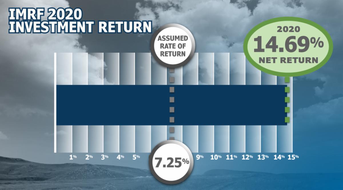 In 2020, the IMRF investment portfolio earned a net return of about 14.69%, which is double the assumed rate of return of 7.25%.