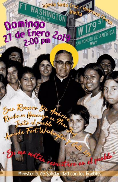 Los invito a que se unan a mí para una ceremonia de Co-nombramiento de calle en honor a San Romero de América. Después de la misa, a las 2:00 p.m. Daremos una bendición en la esquina de la calle 179 y Fort Washington al nombrar la calle como San Romero de América.