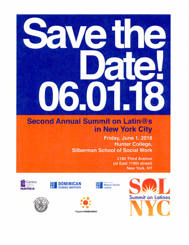 Nueva York, NY - funcionarios electos de la ciudad de Nueva York y tres de los Institutos de Estudios Latin@s de CUNY te invitan a la segunda Cumbre anual sobre los Latin@s que se celebrará el 1 de junio del 2018.