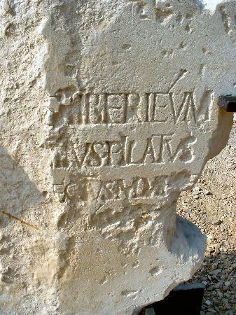 Tra i molti reperti rinvenuti nel corso degli scavi, ebbe particolare risonanza la scoperta di un'iscrizione che riporatava per la prima volta il nome di Ponzio Pilato.