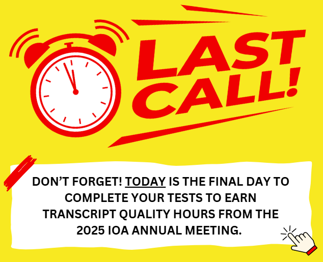 | | Mark your calendars! The IOA Winter CE Series is just around the corner. Registration will open in mid-November, don’t miss it! | |
