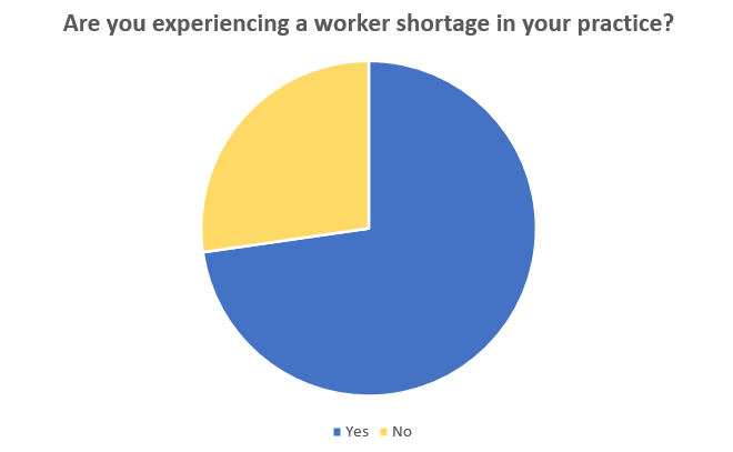 In response to last week's poll question, 72 percent of respondents indicated that they were facing worker shortages in their practice.
