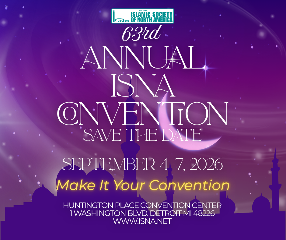 We at the Islamic Society of North America (ISNA) are delighted to announce that the 63rd Annual ISNA Convention will take place in Detroit, Michigan, over the Labor Day Weekend, September 4 - 7, 2026.