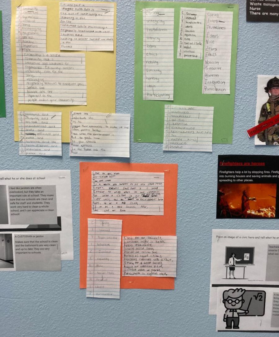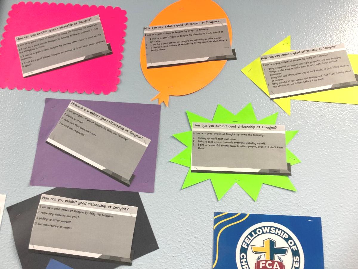 During the first week of every month in Advisory class, students participate in lessons that focus on the character trait of the month. For the month of September, it is Citizenship. Pictured are some of the finished products completed in the middle and high school classes.