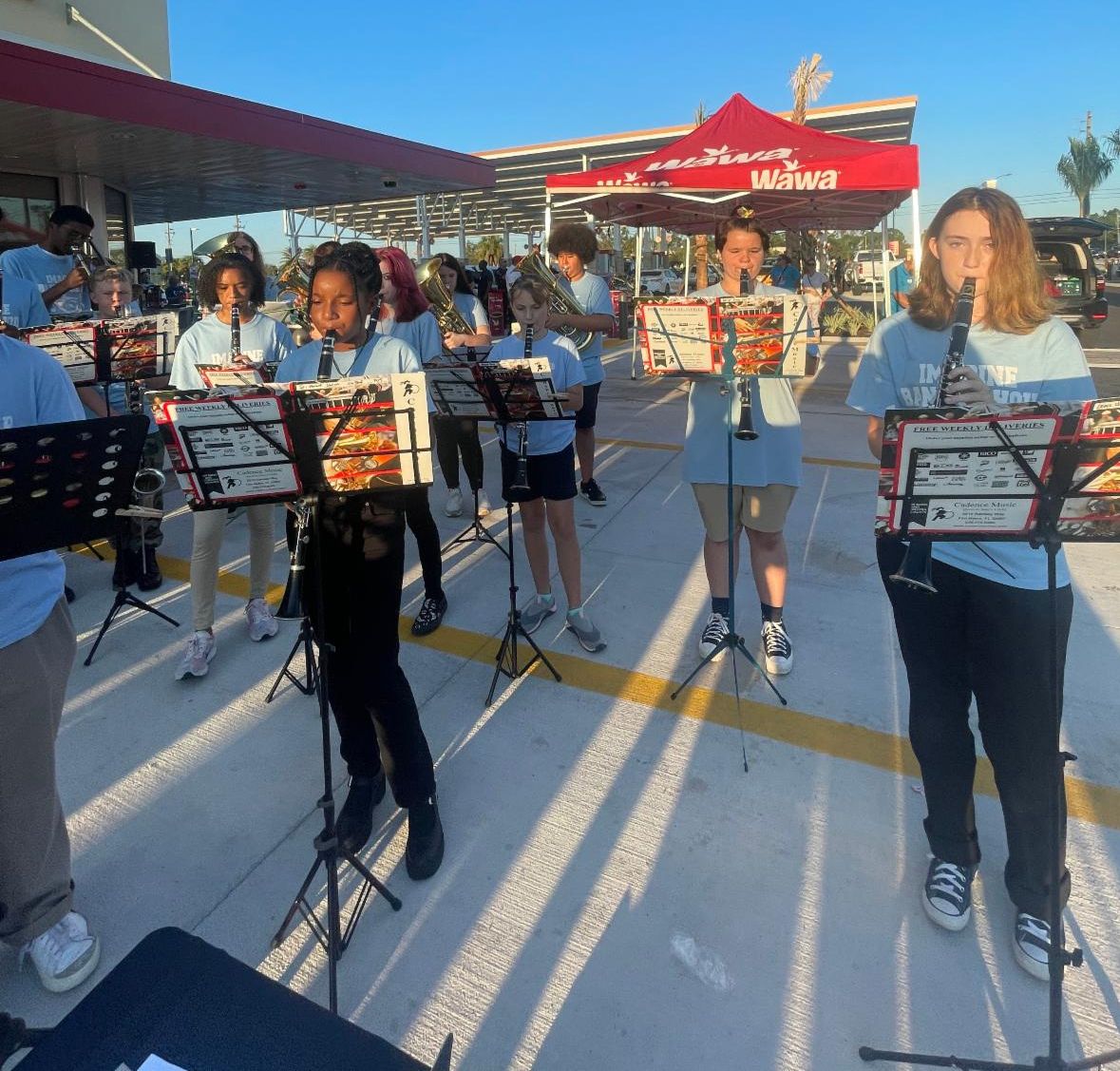 On Thursday, September 14, the ISNP Band performed at the Grand Opening for the Wawa in North Port. The students and I had a really great time playing and watching the Police vs. Firefighter Hoagie Showdown and observing the formal ribbon cutting. After the performance, the band was treated to hoagies and some Wawa swag!