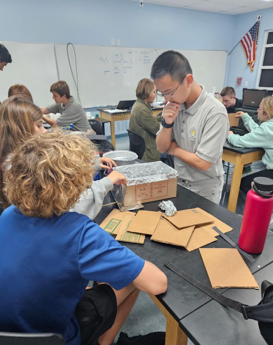Students in my Physical Science classes built solar ovens last week for the unit on energy. The students used mostly recyclable materials to demonstrate how solar energy, heat absorption and insulation can be used to cook items like eggs and quesadillas.