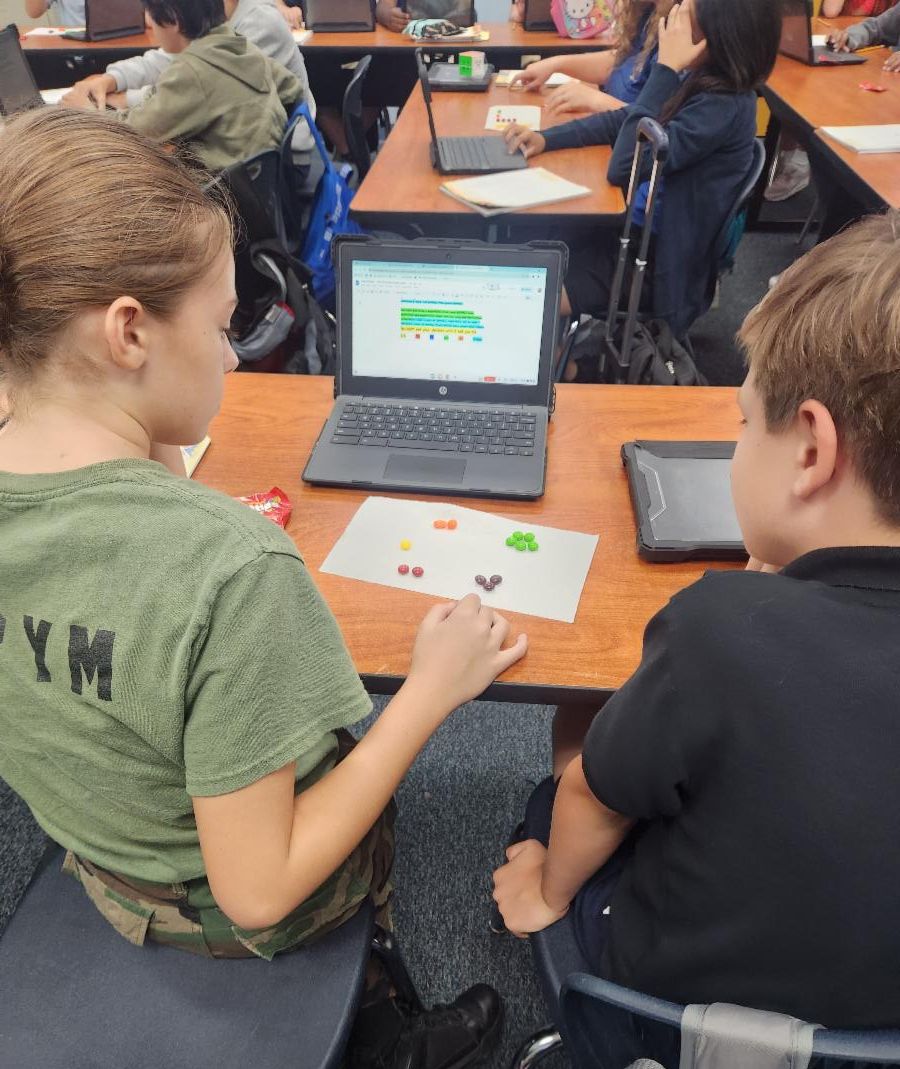 The students in my 6th grade Science classes are learning the steps to the scientific method. In the research step, the students gathered and analyzed their data. They engaged in an activity using Skittles to help them distinguish between qualitative, quantitative, and mixed method data. They made predictions and typed their hypotheses, filled in graphs and charts to assist with their analyses, and determined if their hypotheses proved correct or incorrect. Of course, the students tasted the rainbow at the end of their research. Yummy!