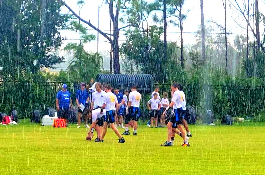On Monday, September 18, the sharks got their first win of the season by defeating Venice Christian School (VCS) 26-19. The team made numerous big plays on offense, and multiple stops on defense. They worked hard as a team and played through the rain to earn the win.