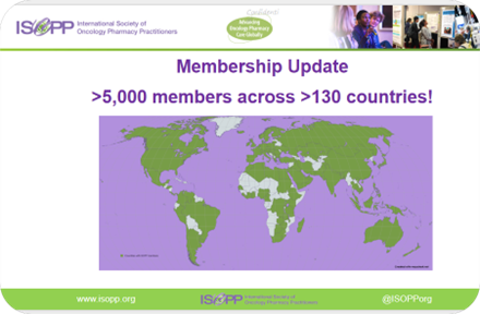 ISOPP relies on your active involvement to further oncology pharmacy practice and meet the challenges facing patients with cancer. I am always available to hear your thoughts about what ISOPP should be doing to accomplish its mission: Advancing Oncology Pharmacy Care for Patient Around the World.