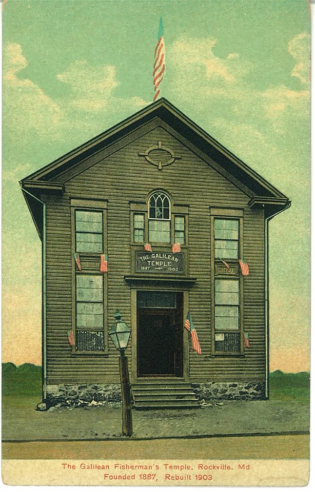 The Galilean Fisherman’s Temple in Rockville, depicted in this postcard from Montgomery History’s Jane Sween Research Library's collection, was home to the Eureka Tabernacle Number 29 of the Order of the Galilean Fishermen. The organization was a fraternal order founded in Baltimore in 1856 to provide mutual aid support to the Black community.