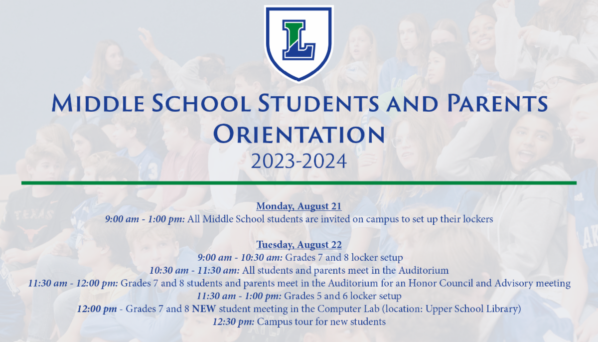 5th and 6th grade only - subject-specific supplies will be removed from the supply boxes prior to pickup and handed out by teachers on the first day of school. Supplies needed for all subjects will remain in their boxes for pickup. If you did not purchase a school supply box from Lakehill, please drop off your supplies in a labeled box at the front desk by Wednesday, 8/16. Students who have not ordered a box or dropped off supplies by this date will have a supply box reserved for them and charged to their account.
