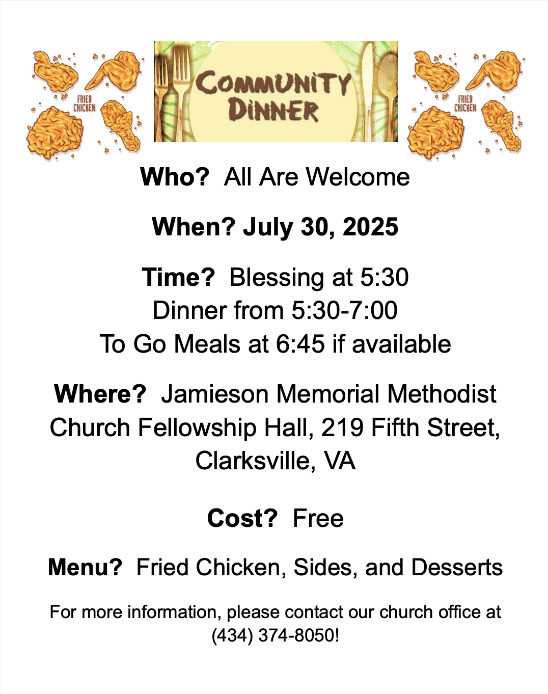 August 20th & August 23rd: Jamison Memorial Methodist Church