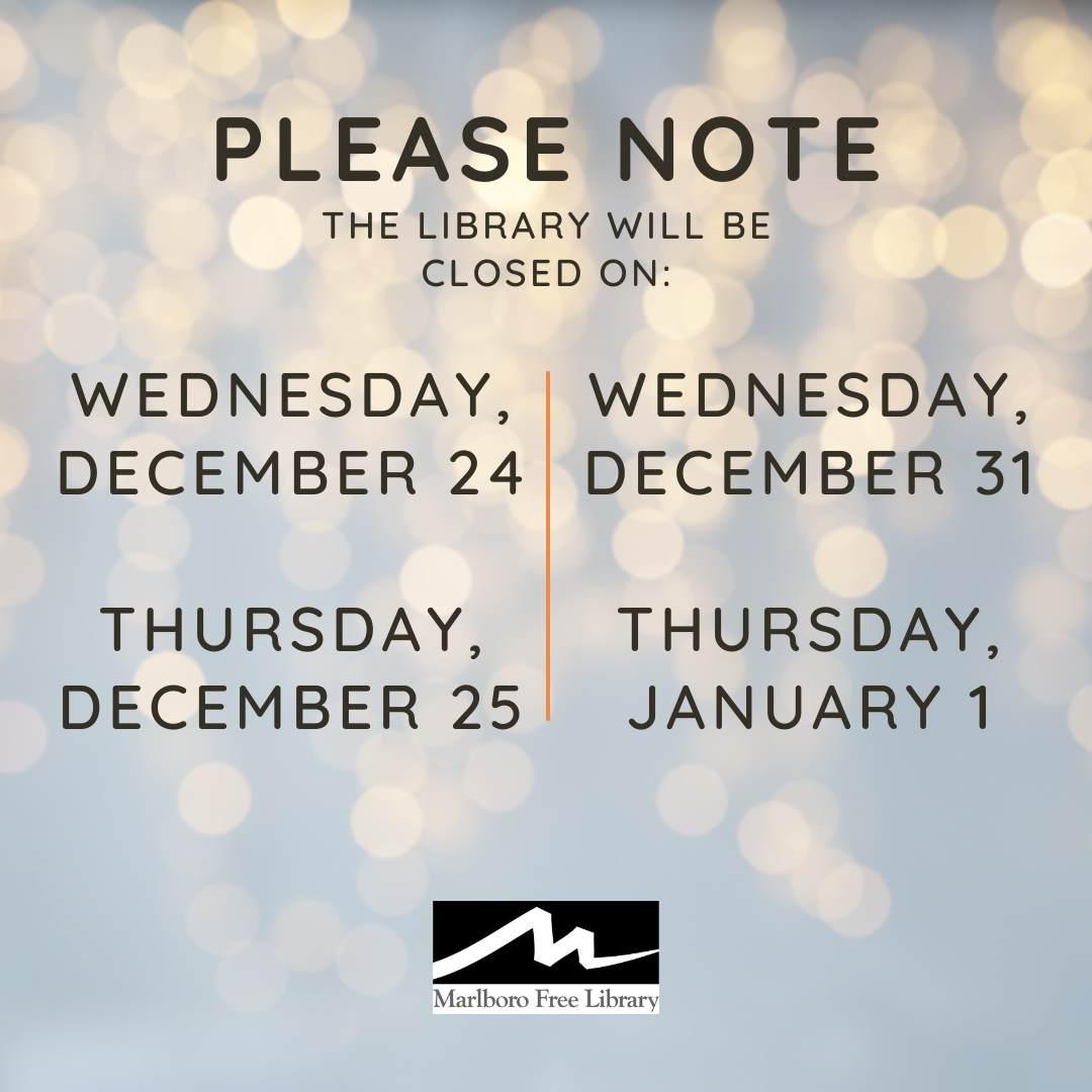 Don’t forget! You can continue to access eBooks, audiobooks, magazines, and streaming services 24/7 through Libby, Hoopla, and Kanopy with your Marlboro Free Library card.