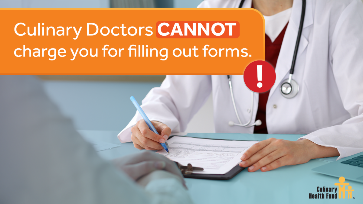 | Don't get charged for forms! | | Remember: In-network Culinary providers CANNOT charge participants to fill out medically necessary forms. These include FMLA, Loss of Time, Disability, and more. | | Getting your FMLA forms filled out at the Culinary Health Centers? | | |