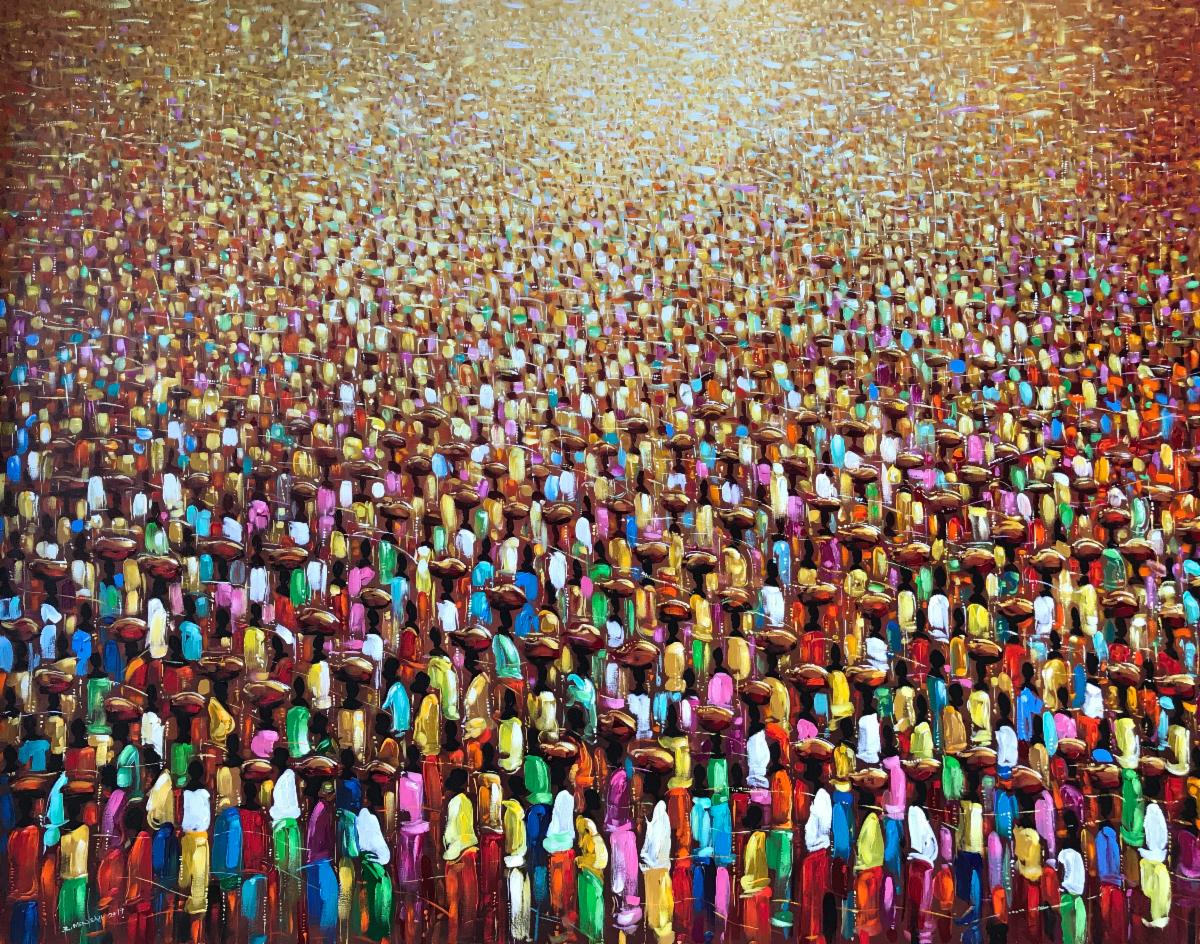 In 2017 when Kwame Boama Mensa arrived in the United States, he didn’t know what reception his art would receive. Would they welcome this newcomer into the American art scene? Mensa, 42, was born and raised in West African Ghana. He started painting full-time after graduating from art school. Studying in Ghana in the 90s gave him a sense of his place as an artist. After graduating in 1999 he realized that his journey was not coincidental; it was purposeful, and a path he’d been on since early childhood.