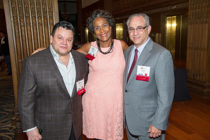 (l to r) Award winners Luis Torrado of Torrado Construction, Franne McNeal of Goldman Sachs 10,00 Small Business Initiatives and Mario Zacharjasz of PZS Architects