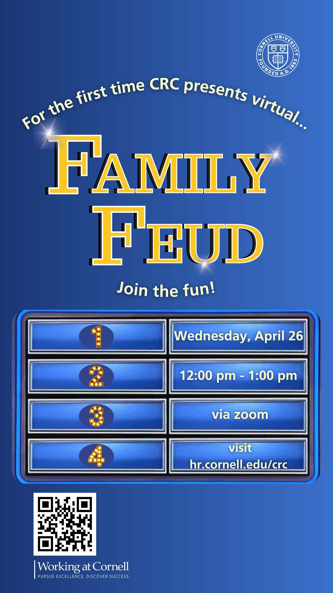 If attending the in-person group fitness class, check in with your Cornell ID card at the Helen Newman Hall Issue Room. To join the group fitness class virtually, contact Keri Johnson to receive the link for this class. Must have a Wellness Recreation Membership to participate.