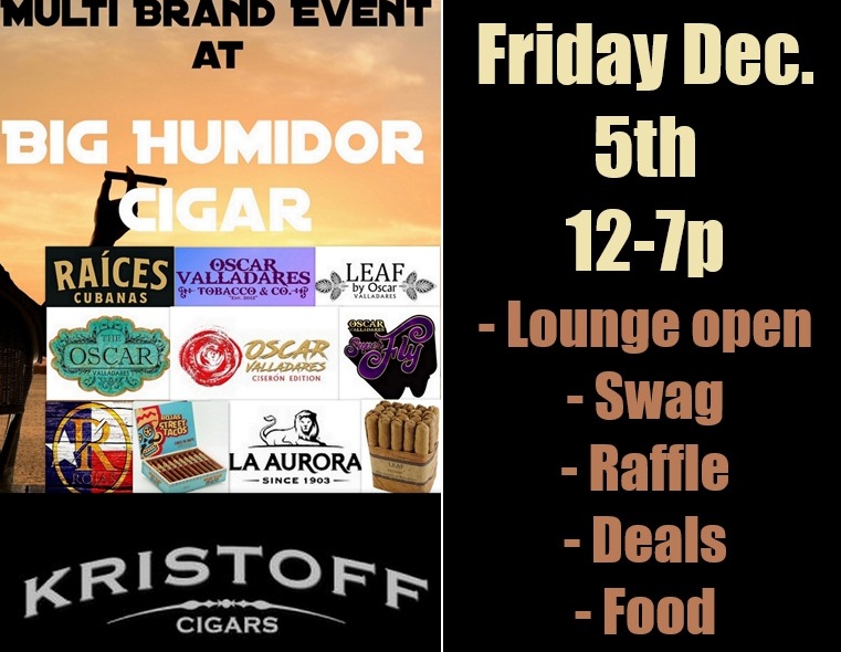 | | Join us this Friday for a Great In Store Event featuring Cigars from 5 Great Manufacturers including Oscar Valladares and Leaf, Kristoff, Rojas including Street Tacos, Raices Cubanas and La Aurora. Lunch will Be Served and the Man Cave Open | | |