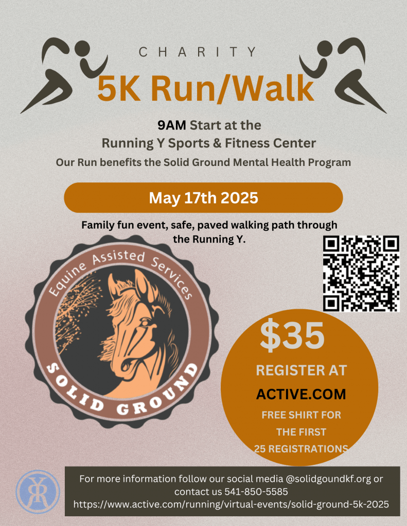 Solid Ground 5K benefit walk/run | The Solid Ground Equestrian facility and the Running Y have teamed up once again to host a benefit walk/run. This run is to benefit the Solid Ground Veteran and Youth programs. The 5K will be held at | | | |