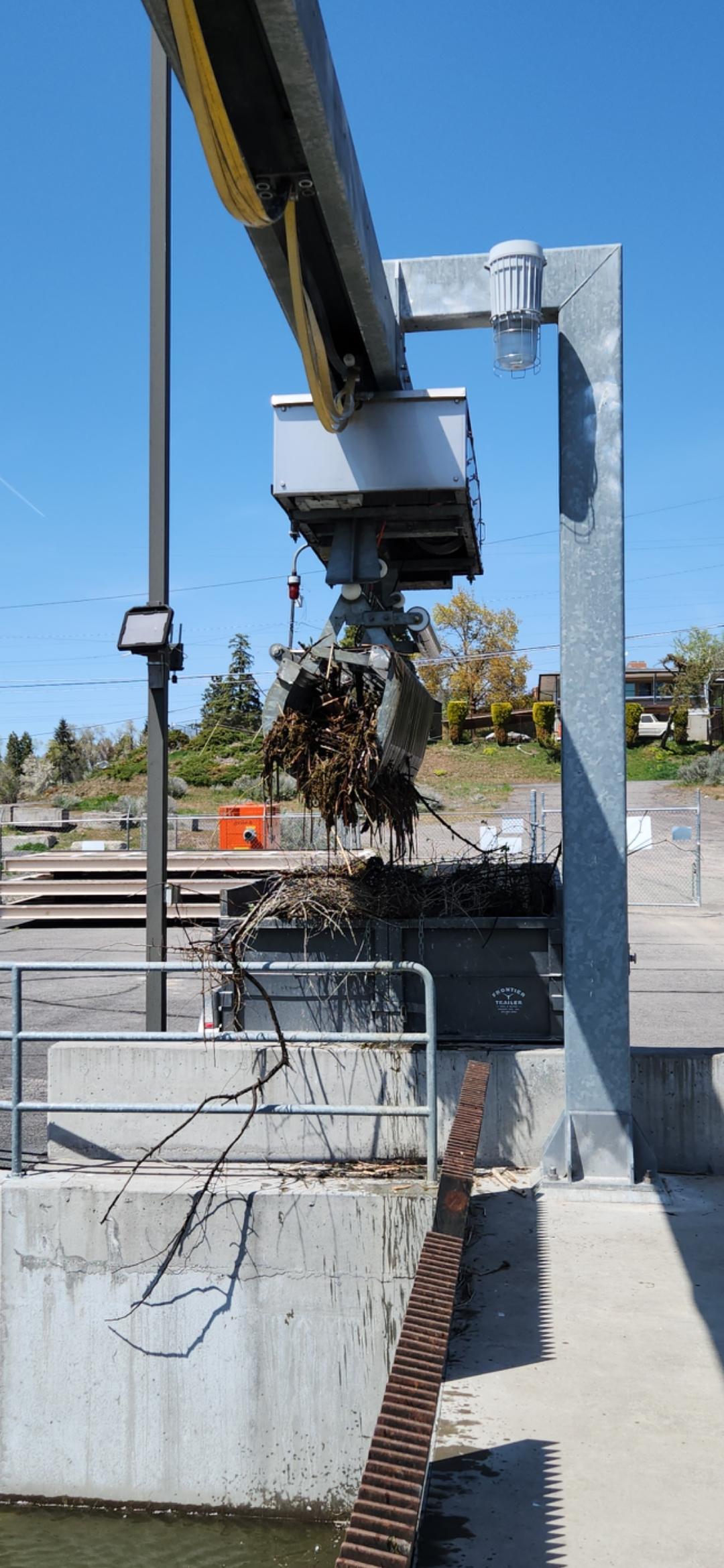 Do you ever wonder where the trash that blows around the City of Klamath Falls ends up? A great deal of it finds its way into our canals and drains - either intentionally deposited by humans or through the wind. In this photo, the maintenance team is clearing a huge debris field just upstream from our hydropower generation plant. Trash blocks water flow, damages our gates and turbines, and results in overtopping of canals when the water can not flow.