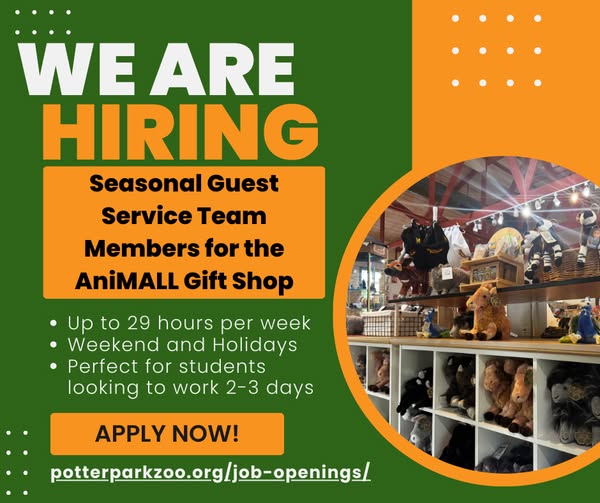 Do you love animals, people, and creating unforgettable experiences? Potter Park Zoo is looking for Customer Service Attendants to join our team!