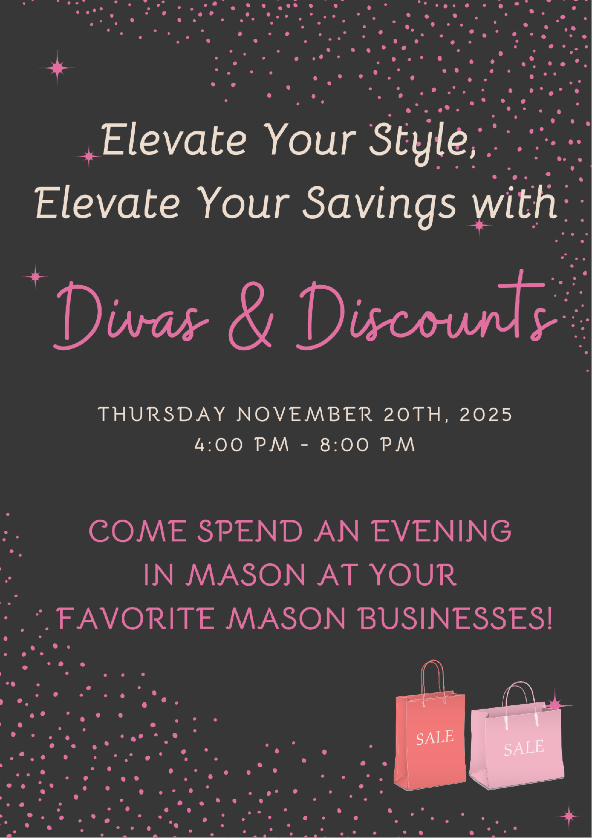 MORE INFO & DETAILS: Available 24/7 on our www.masonchamber.org website and be sure to like us on Facebook https://www.facebook.com/masonchamber